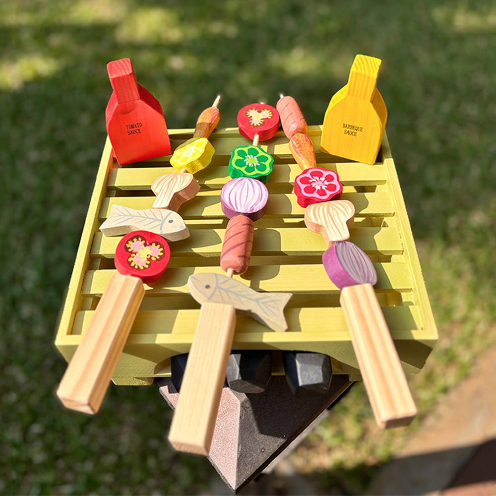 Fire up imaginative play with this adorable Wooden Barbecue Grill Set. Featuring colorful skewers, fish, veggies, and sauces, it lets little chefs grill and serve their own pretend meals. Made from smooth, child-safe wood with non-toxic paints, it’s perfect for creative, screen-free fun at home or outdoors.